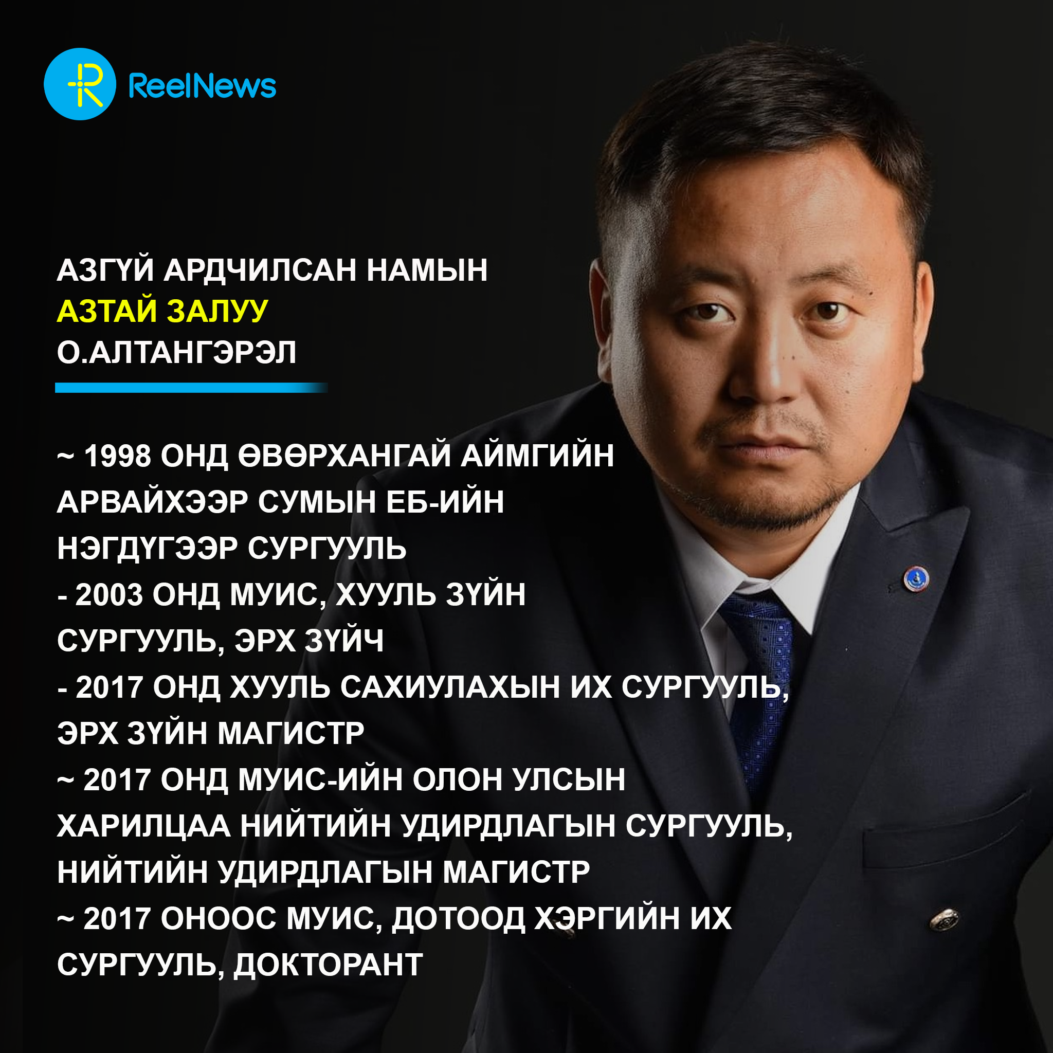 Нам нь лааз өшиглөөд бие бие рүүгээ буруугаа чихэж байхад цэмбийж тодорсон хүн бол О.Алтангэрэл. УИХ-ын гишүүн Хууль зүйн сайд ч болоод 2024-2025 онд тэр гялалзаж амжсан. Тэрээр 2001 оноос хойш тасралтгүй хуулийн салбартаа ажиллаж яваа юм билээ. Тиймдээ Ардчилсан намын даргад ч яригдаад өнгөрсөн. О.Алтангэрэл эх орондоо хууль зүйн боловсрол эзэмшиж боловсролдоо ихэд анхаарсныг түүний суралцсан он жилүүд илэрхийлж байна.
