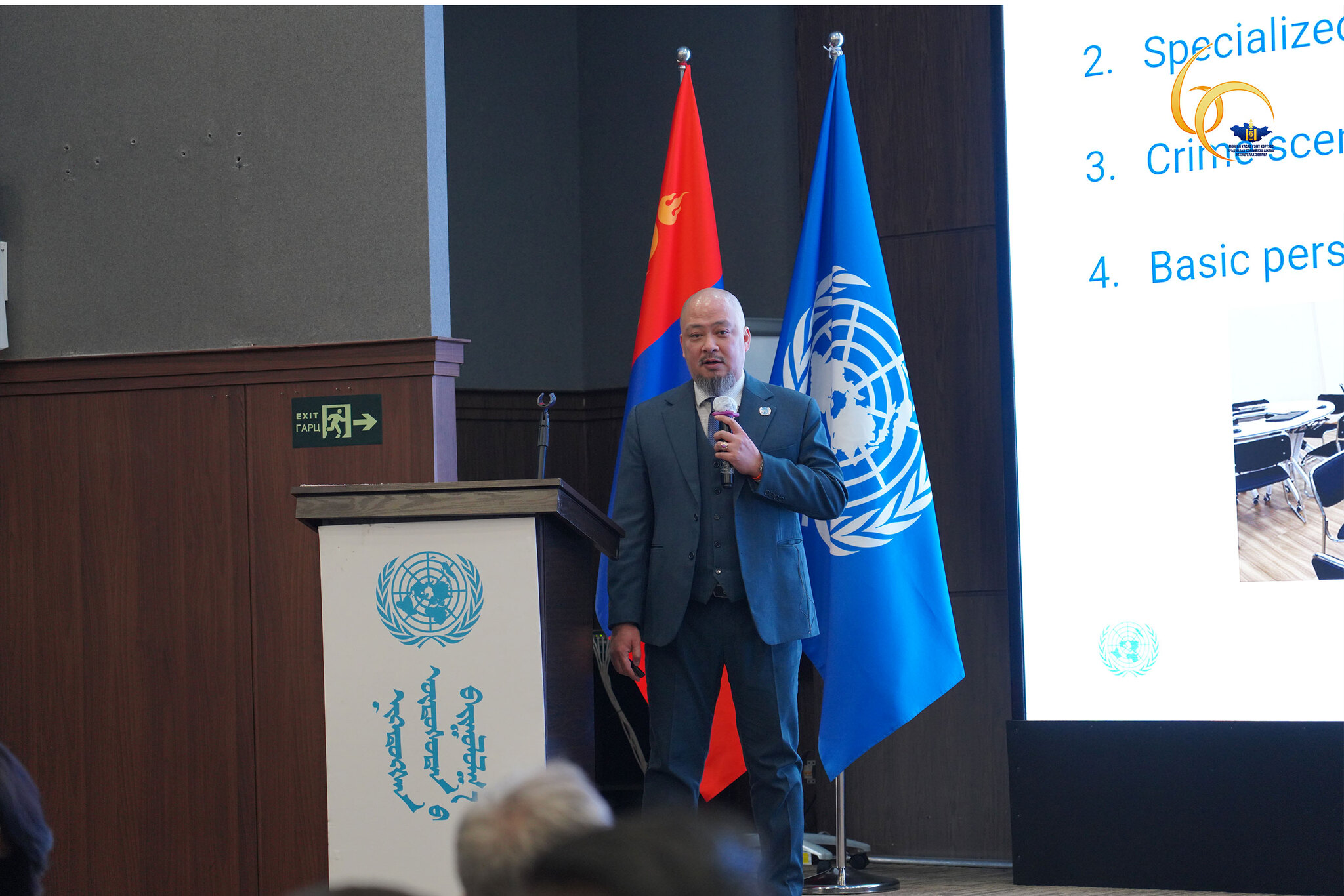Танилцуулга илтгэлийг НҮБ-ын МБГХТА-ны ЗӨАНДБ-ийн Мансууруулах бодисын хяналт, гэмт хэргээс урьдчилан сэргийлэх мэргэжилтэн Иншик Сим “Бүс нутагт үйлдэгдэж буй үндэстэн дамнасан зохион байгуулалттай гэмт хэрэг ба өнөөгийн чиг хандлага” сэдвийн хүрээнд хийсэн бол ЦЕГ-ын Гадаад харилцаа, энхийг сахиулах ажиллагааны хэлтсийн дарга Б.Эрдэнэдалай “Монгол Улс дахь гэмт хэргийн нөхцөл байдал, статистик тоо баримт, хууль сахиулах байгууллагад тулгамдаж буй асуудал” сэдвээр мэдээлэл өглөө.