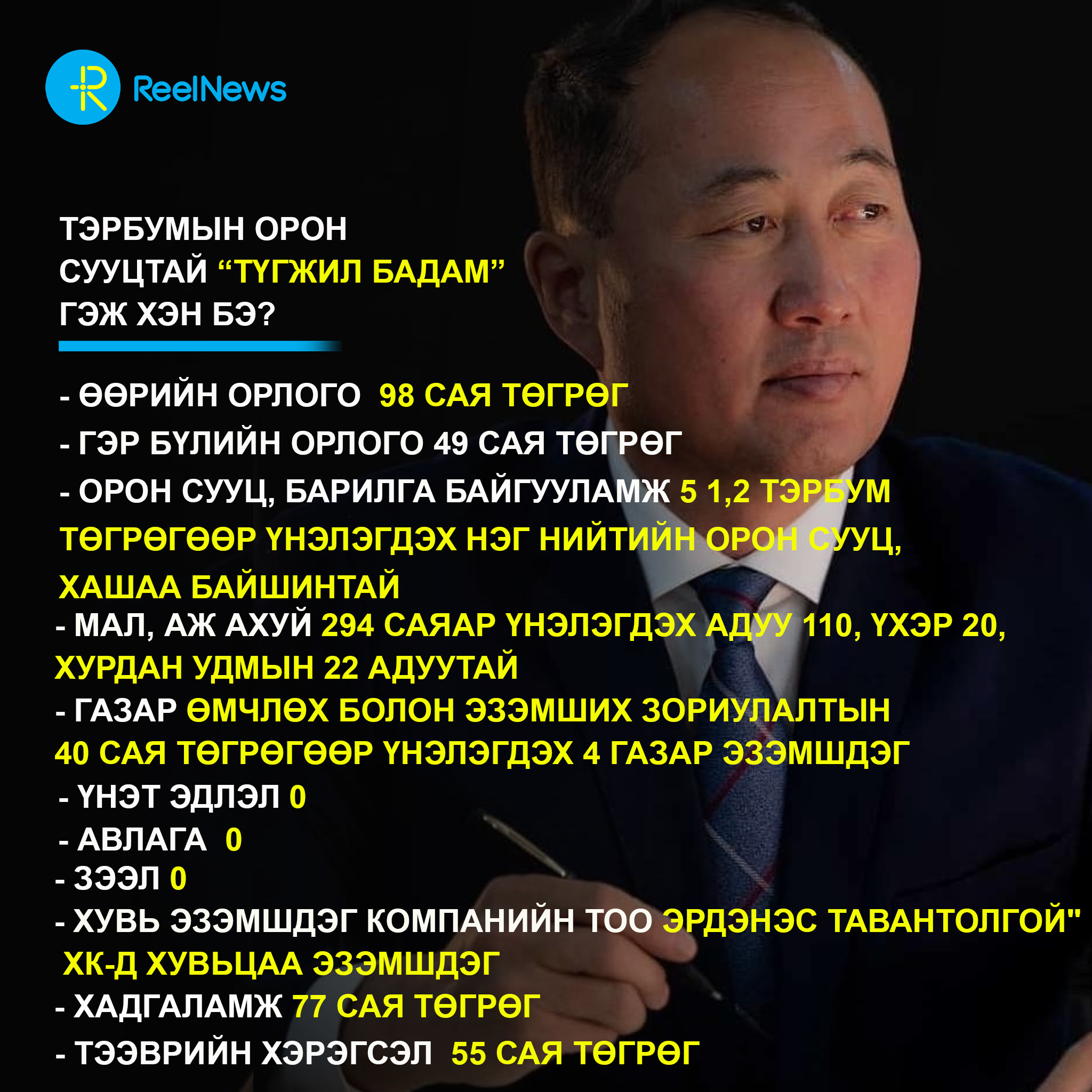 - Өөрийн орлого 98 сая төгрөг,