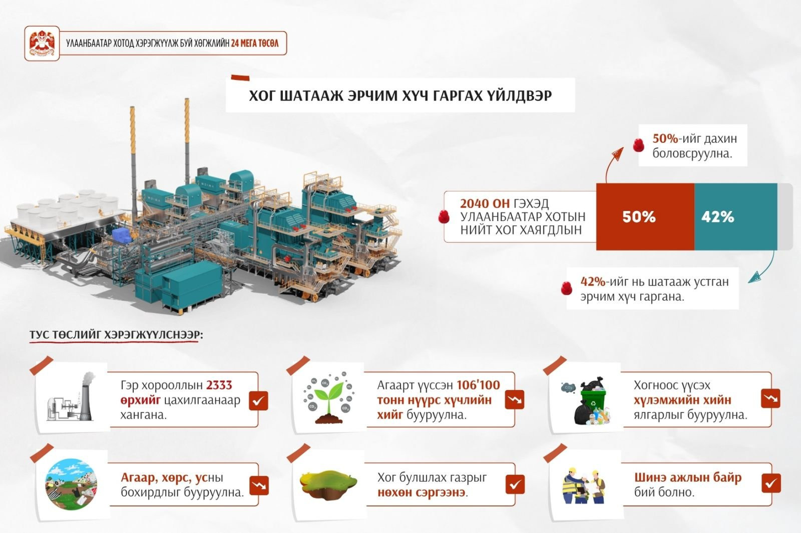 Нийслэлийн хэмжээнд гурван төвлөрсөн хогийн цэгт нийлүүлж буй нийт хог хаягдлын 11.4 хувийг дахин боловсруулж, 88.6 хувийг булж устгаж байна. Хогийг булж устгах арга нь метан хийг ихээр ялгаруулдаг, байгаль орчинд сөрөг нөлөө ихтэй. Тиймээс хогийг булж устгахгүйгээр шатаах аргаар эрчим хүч гаргаж авах дэвшилтэт технологи бүхий “Хог шатааж эрчим хүч гаргах үйлдвэр”-ийг Хан-Уул дүүргийн 12 дугаар хороо, Морингийн давааны хогийн цэгийг түшиглэн 10 га газарт ирэх онд барьж эхэлнэ.