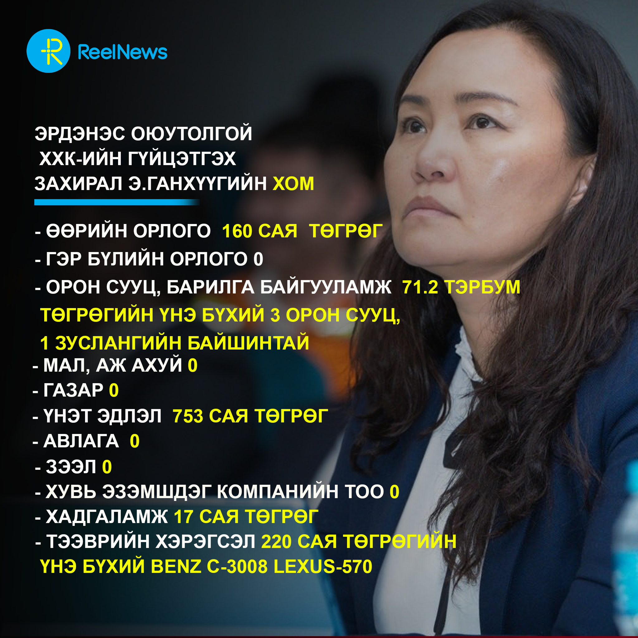 Эрдэнэс Оюутолгой ХХК-ийн гүйцэтгэх захирал Э.Ганхүү нь 2024 оны 2 дугаар сарын 28-ны өдөр тус албанд томилогдож байв. Дээр хэлсэнчлэн тэрээр Оюутолгойн бүлэг ордын асуудлаарх хяналтын сонсголд гэрчээр дуудагдаад байсан юм. Баривчилгааны 48 цаг маргааш орой /2025.12.11/ дуусах ба хэрэв үргэлжлүүлэн баривчлахгүй бол баасан гарагт болох сонсголд оролцох боломжтой аж.