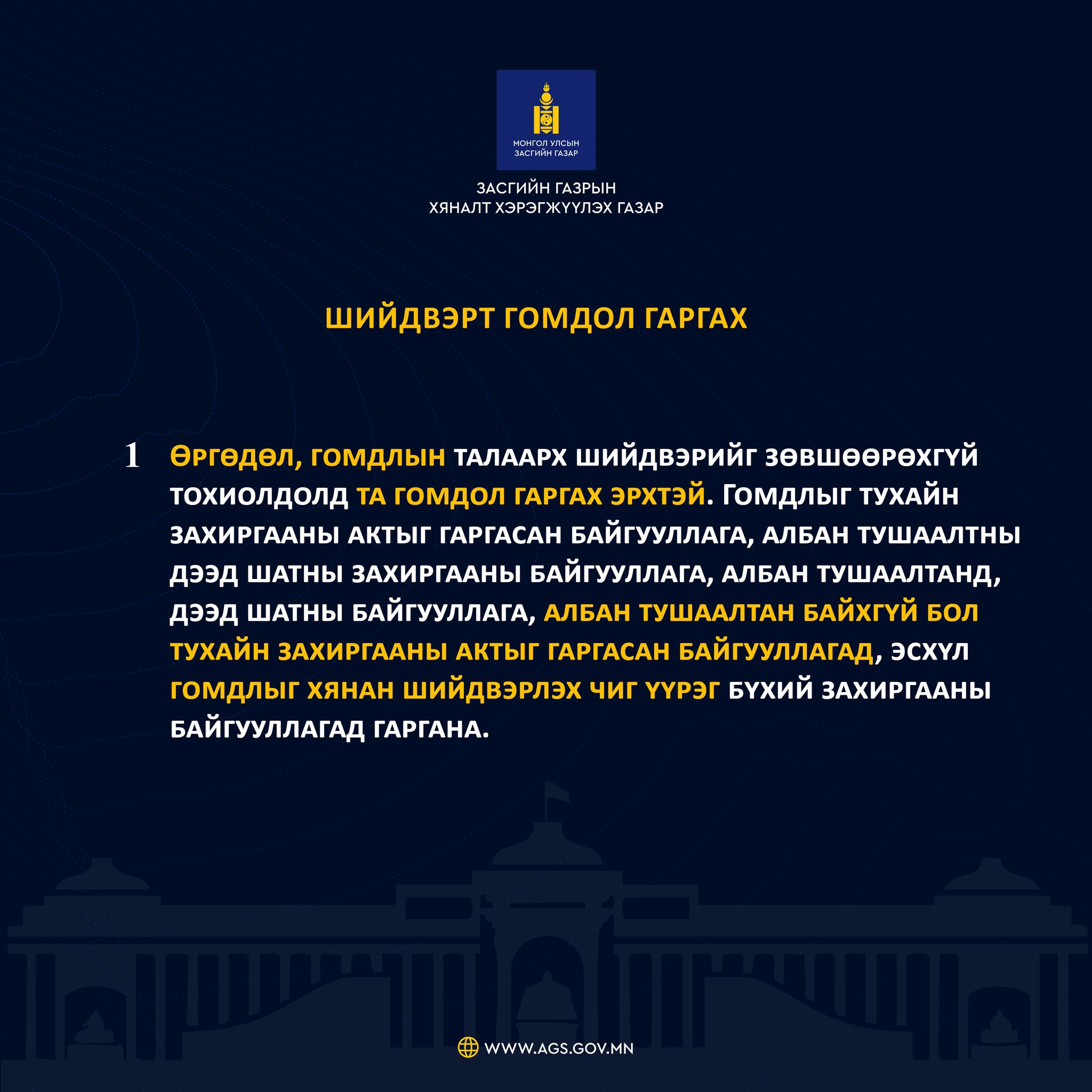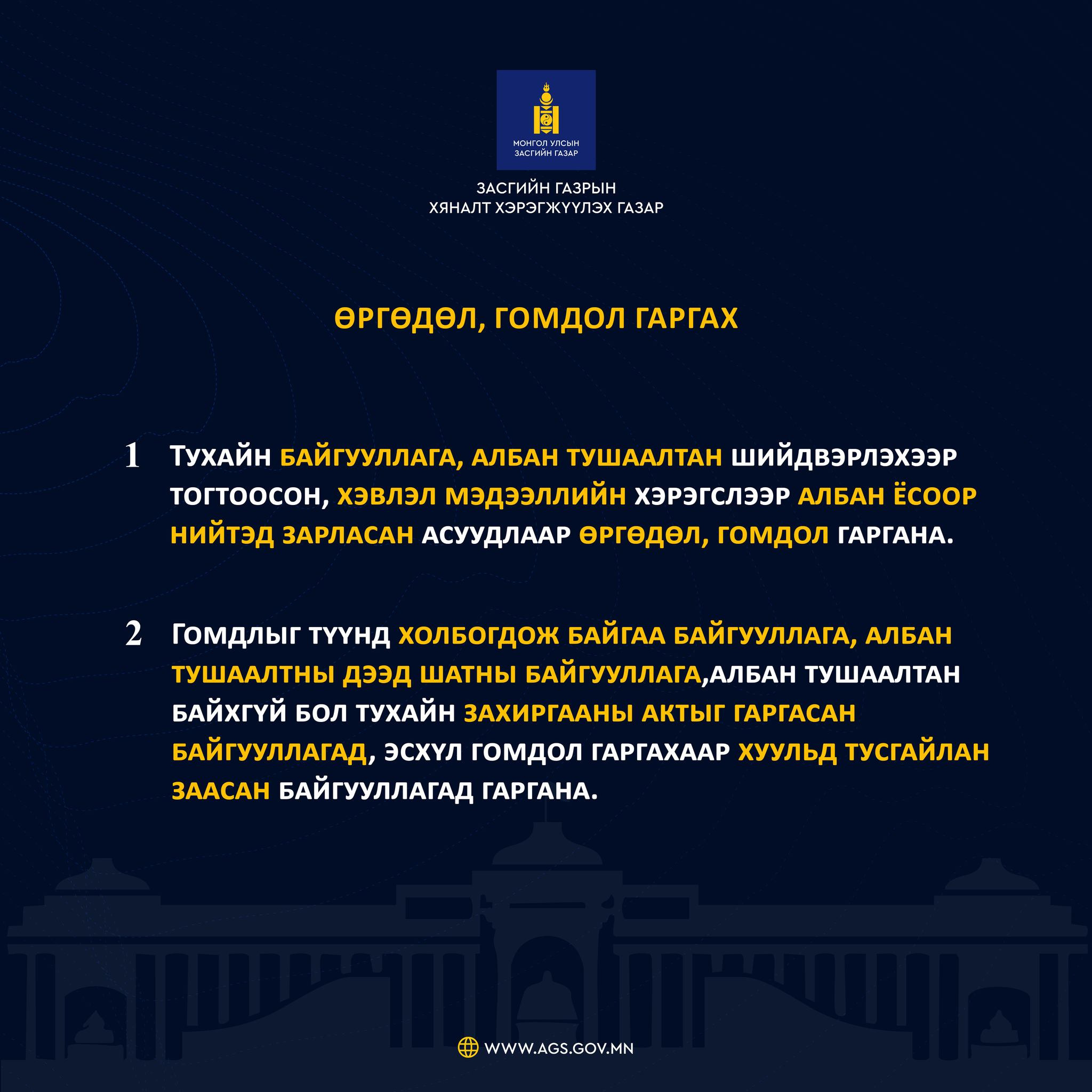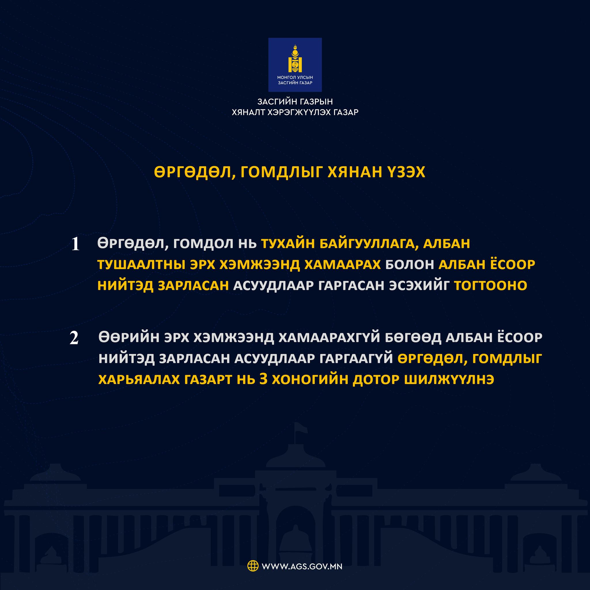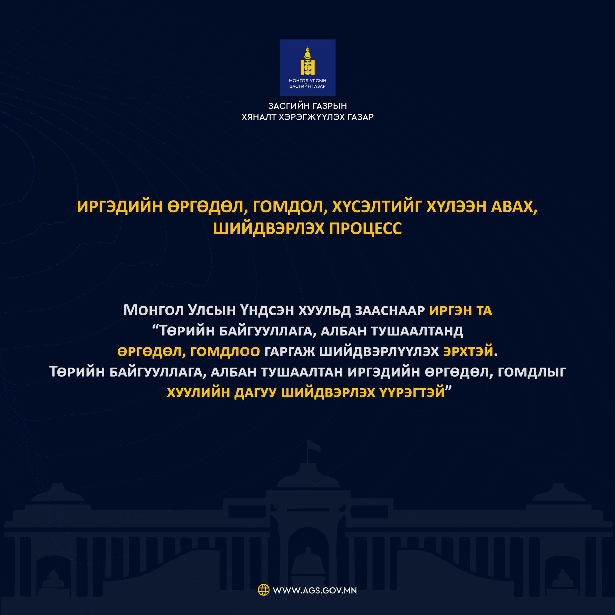 Иргэдийн өргөдөл, гомдол, хүсэлтийг хүлээн авах, шийдвэрлэх процессыг олон нийтэд танин мэдүүлэх нь Засгийн газрын Хяналт хэрэгжүүлэх газрын үүрэг юм. Монгол Улсын Үндсэн хуульд зааснаар иргэн бүр: