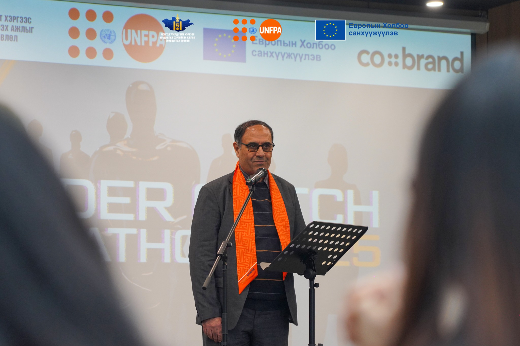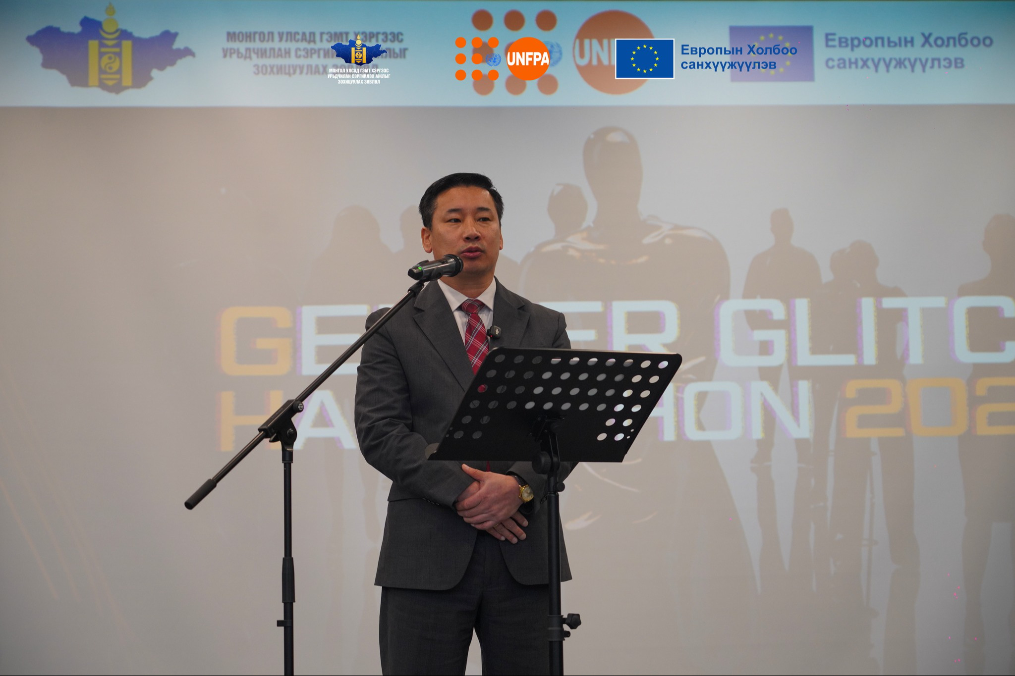 Хакатон уралдааныг нээж НҮБ-ын Хүн амын сангийн тэргүүн Халид Шарифи, Ажлын албаны хэлтсийн дарга Б.Одмандах нар үг хэлсэн ба жендэрийн хэвшмэл ойлголтын шалтгаан, нөхцөл, нийгэмд үзүүлж буй сөрөг нөлөөллийг тодорхойлж, олон нийтийн мэдлэг ойлголтыг нэмэгдүүлэхэд энэхүү уралдаан чухал ач холбогдолтойг онцлоод энэ төрлийн гэмт хэргээс урьдчилан сэргийлэх ажилд залуусын дэвшүүлж буй санаачилга, шийдлийг тусгаж, хэрэгжүүлэхээ илэрхийллээ.