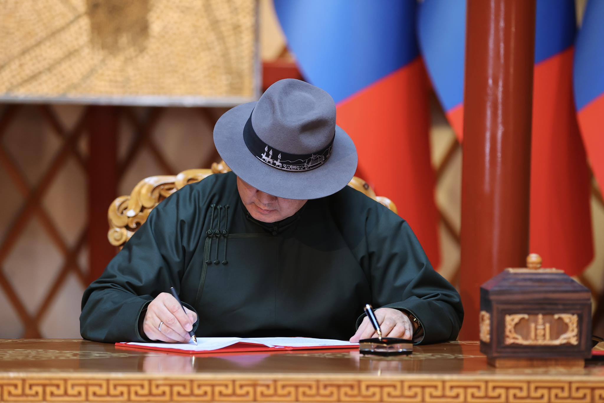 Зарлигийг уншиж сонордуулсны дараа Монгол Улсын Ерөнхийлөгч Ухнаагийн Хүрэлсүх, Монгол Улсын Ерөнхий сайд Гомбожавын Занданшатар нар зарлигт гарын үсэг зурлаа.