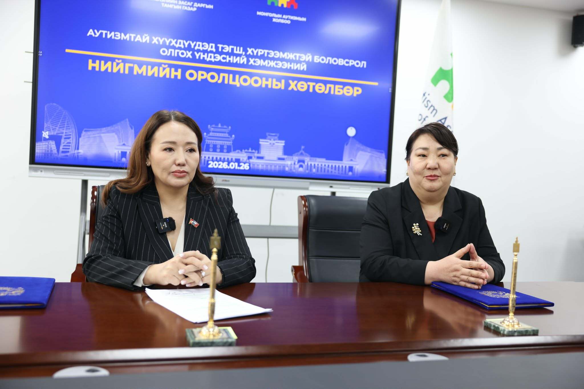 Хөгжлийн бэрхшээлтэй болон аутизмтай хүүхдэд тэгш, хүртээмжтэй боловсрол олгох олон улсын шилдэг туршлагад суурилсан үндэсний хэмжээний нийгмийн оролцооны хөтөлбөрийг 2026-2030 онд хэрэгжүүлнэ. Энэ хүрээнд нийслэлийн Санхүү, эдийн засаг, хөгжлийн бүтээн байгуулалтыг эрчимжүүлэх төсөл, хөтөлбөрийн зохицуулагч Л.Хосбаяр Монголын аутизмын холбооны НҮТББ-ын зөвлөх Л.Алтангэрэл нар хамтын ажиллагааны санамж бичиг байгууллаа. Тус хөтөлбөрийн эхний үе шат энэ ондоо хэрэгжих бөгөөд эхний ээлжид судалгаа, хэрэгцээг тодорхойлж, туршилтын сургуулийг сонгоно. 2027-2028 онд бодитоор турших, сургалт, сургалтын орчны шинэчлэлийг хийнэ. Хөтөлбөрийн III үе шат 2028–2030 онд хэрэгжих бөгөөд энэ хугацаанд үнэлгээ хийх, өргөтгөх, бодлого болон стандартад тусгах ажлыг зохион байгуулна.