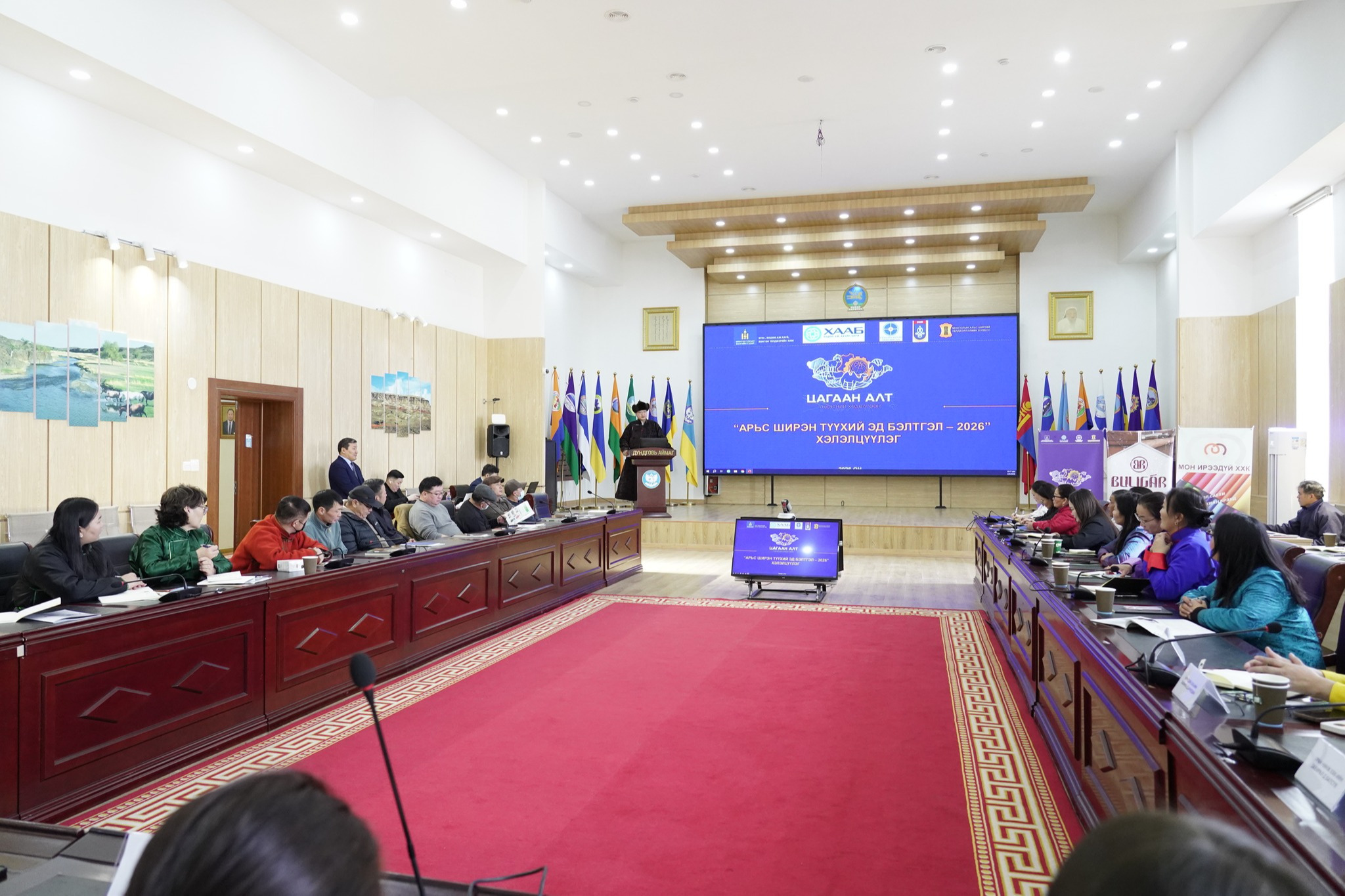 Хэлэлцүүлэг, сургалтын нээлтийн ажиллагааг аймгийн Засаг дарга С.Мөнхчулуун нээж, Хүнс, хөдөө аж ахуй, хөнгөн үйлдвэрийн яам, Хөдөө аж ахуйн бирж ТӨХХК, Зээлийн батлан даалтын сан, Хөнгөн үйлдвэрийн судалгаа, хөгжлийн хүрээлэн, Монголын арьс ширний үйлдвэрлэлийн холбоо, Монголын ноосон бүтээгдэхүүн үйлдвэрлэгчдийн холбоо болон Дархан нэхий ХК, Мон-Ирээдүй ХХК, Арилдий ХХК, Уран нинж ХХК зэрэг үндэсний боловсруулах үйлдвэрийн төлөөлөл оролцож, түүхий эдийн бэлтгэл, чанар, стандарт, зах зээл, санхүүжилт, бүтээгдэхүүн хөгжүүлэлтийн талаар мэдээлэл өгч, санал солилцож байгаа юм.
