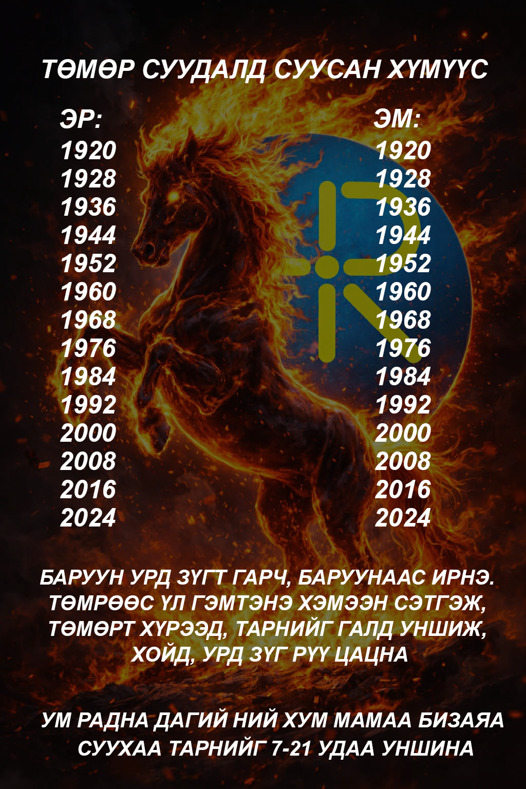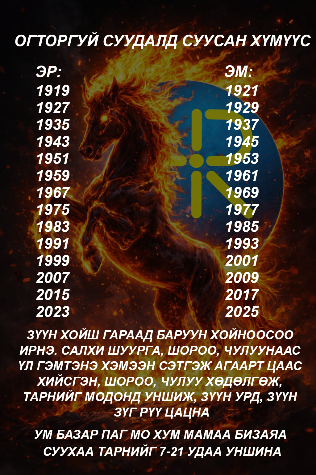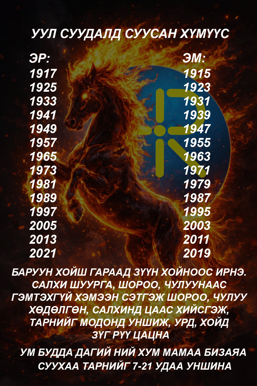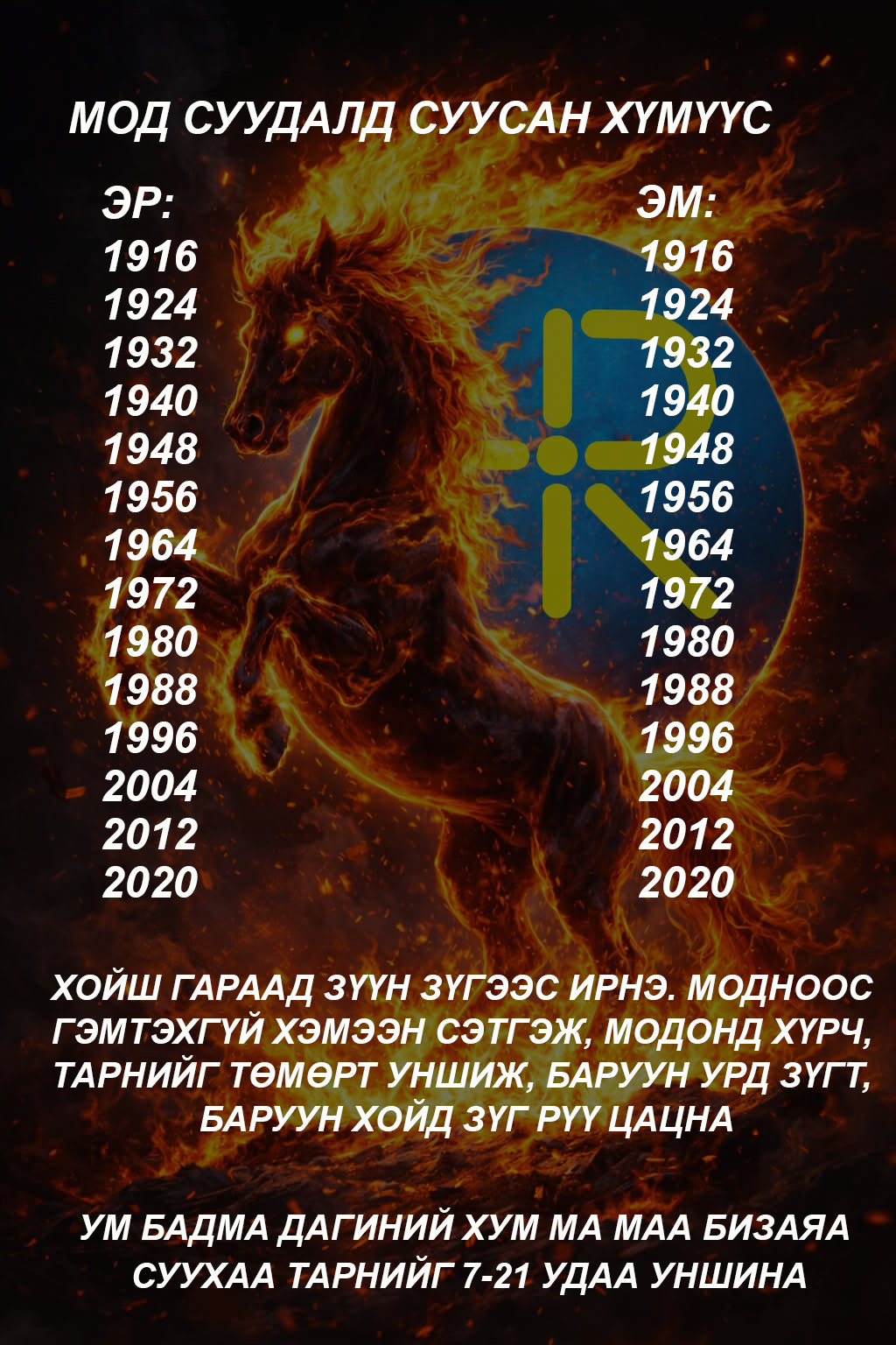XVIII жарны "Сүрээр дарагч" хэмээгч гал морин жилийн хаврын тэргүүн сарын шинийн нэгний өглөө мөрөө хэрхэн гаргах зааврыг хүргэж байна. Энэ жил таны юу санасан есөн цагаан хүсэл сэтгэлчлэн биелэх болтугай.