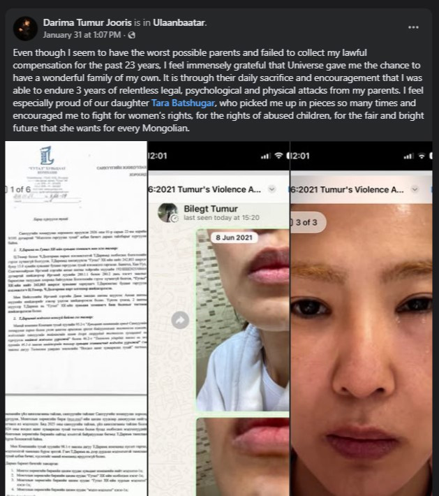 Гаднаасаа амжилттай, өв тэгш бүсгүй бага балчир хүүхэд наснаасаа эхлэн 23 жилийн турш эцэг эхдээ зодуулж, хүчирхийлүүлсэн бөгөөд өдгөө 40 гарсан ч эцэг, эх нь эцэстээ түүнтэй хөрөнгийн маргаан хийж, сүүлийн 3 жилийн турш шүүхдэж байгаа аж. Т.Даримагийн тухайд гадаадад боловсрол эзэмшсэн төдийгүй дэлхийн хэмжээний банканд ажиллаж байсных “Гутал” ХК-даа цалин мөнгөгүй ажиллахын сацуу гаднаас хөрөнгө татах гэх мэтээр хувь нэмрээ оруулсан ч гэлээ эцэст нь эцэг эх нь төрсөн охинтойгоо хөрөнгө булаацалдаж, хууль шүүх дээрээ тулж болоогүй хүний хань, хүүхдүүдийн ээж болсон бүсгүйд гар хүрч, хүчирхийллээ үйлдсээр байгаа нь хүний ёс, монгол этик хаачсан бэ гэж асуухад хүргэж байгаа юм.