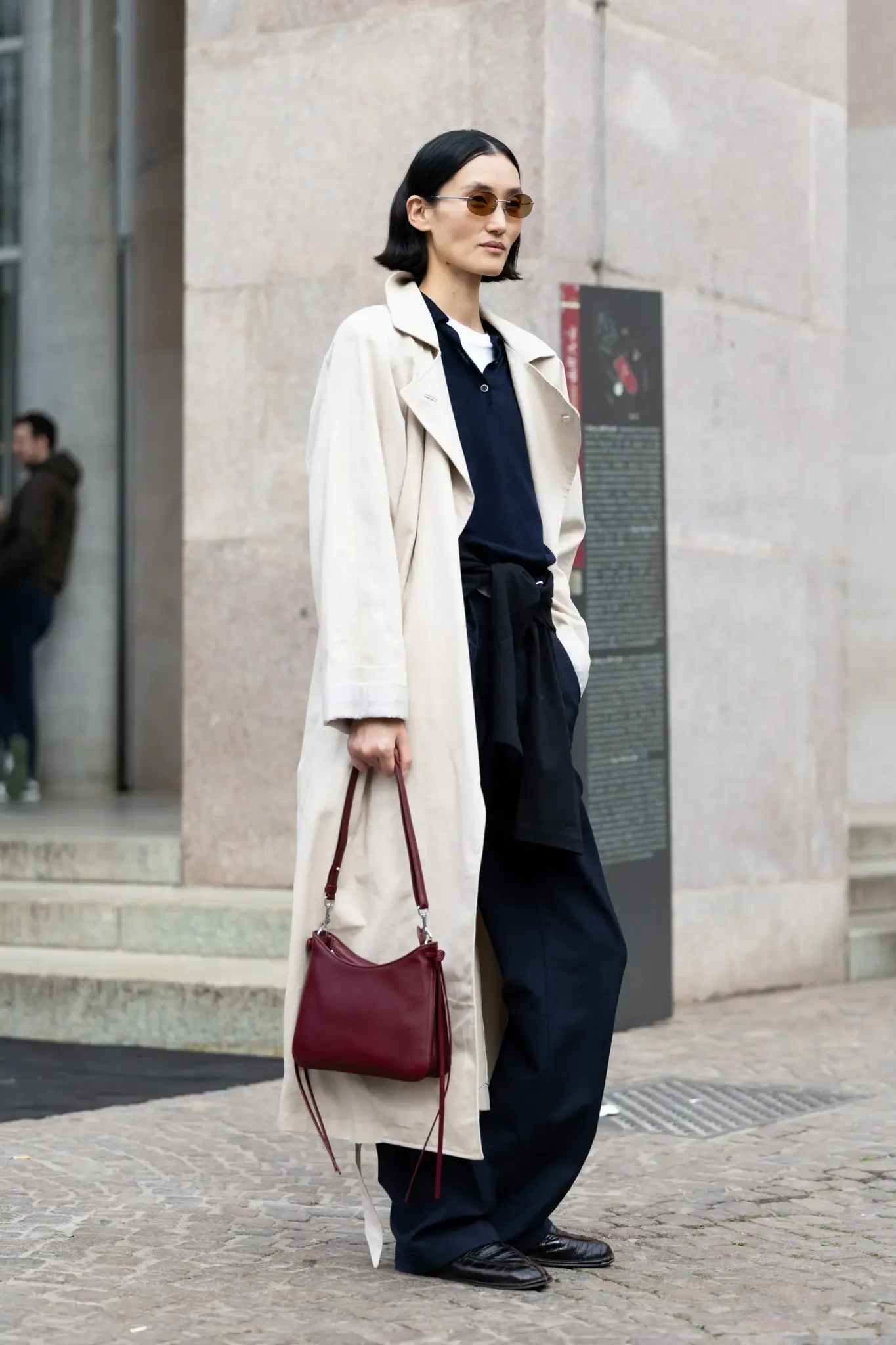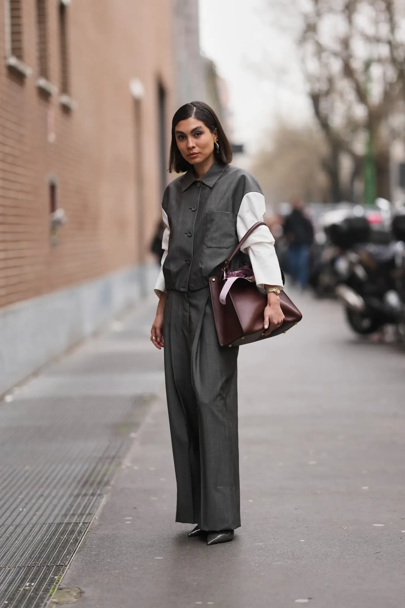 Загварын шоуны гаднах гудамжинд ч энэ өнгө ямар олон янзаар хослох боломжтой болохыг загвар сонирхогчид харуулсан. Зарим нь дарсны улаан өнгийг зүгээр л жижигхэн өнгийн акцент болгон ашиглаж, саарал костюм эсвэл беж өнгийн пальтог тодотгох мөрний цүнх, эсвэл сул жинсэн өмдтэй зохицох бариултай цүнхийг сонгожээ.