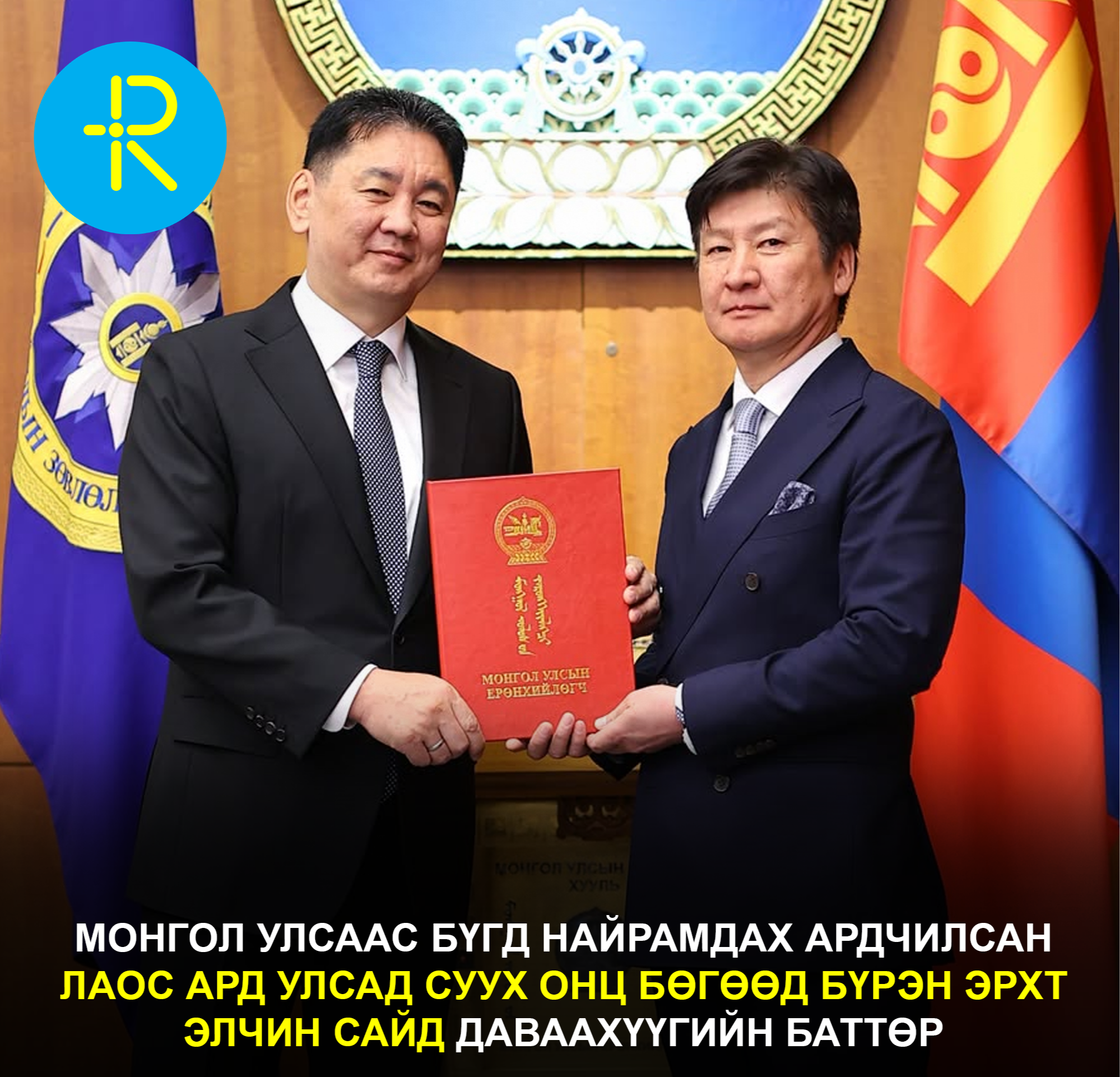 Монгол Улсаас Бүгд Найрамдах Ардчилсан Лаос Ард Улсад суух Онц бөгөөд Бүрэн эрхт Элчин сайдаар Даваахүүгийн Баттөр