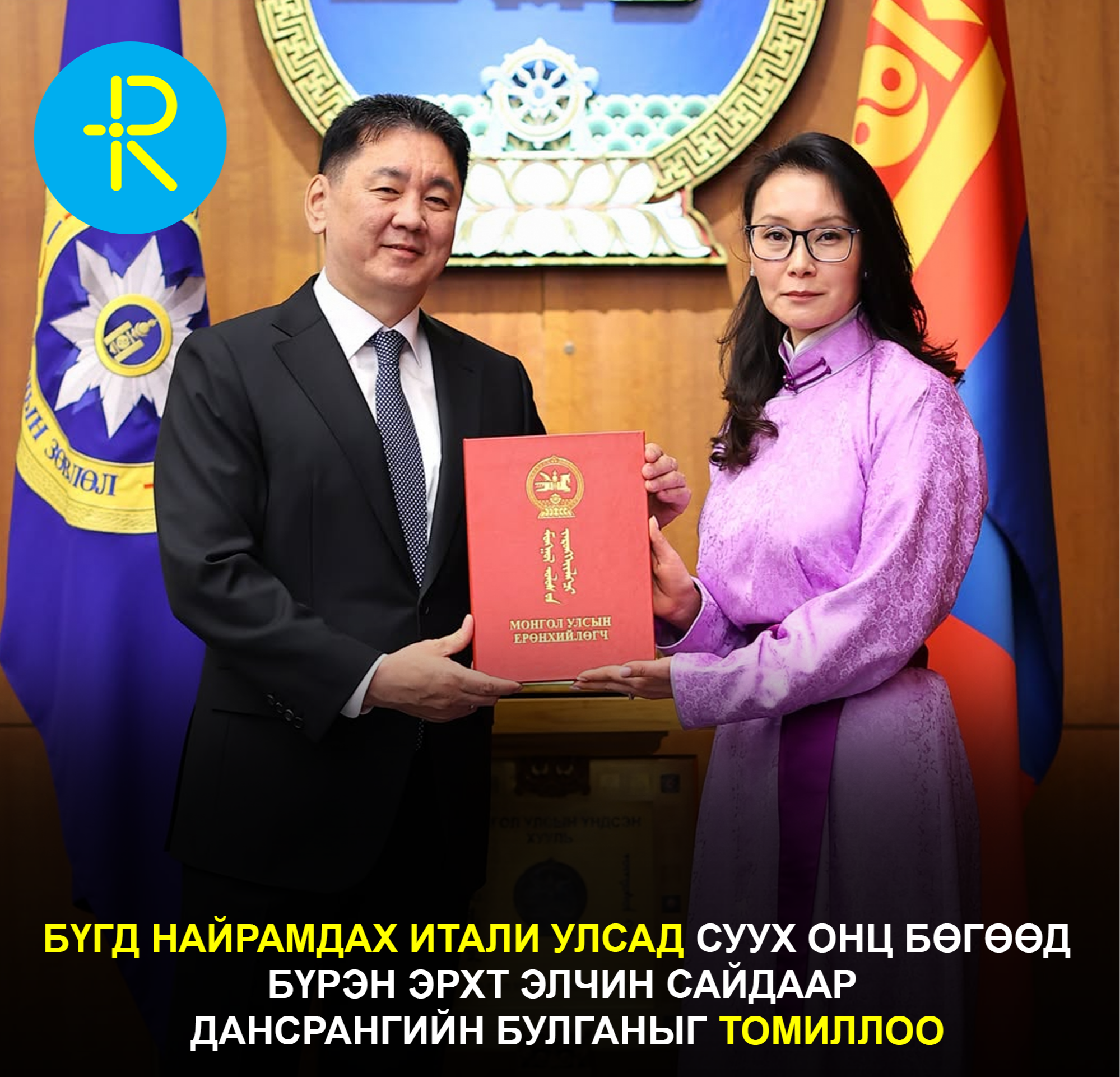 Монгол Улсаас Бүгд Найрамдах Итали Улсад суух Онц бөгөөд Бүрэн эрхт Элчин сайдаар Дансрангийн Булган