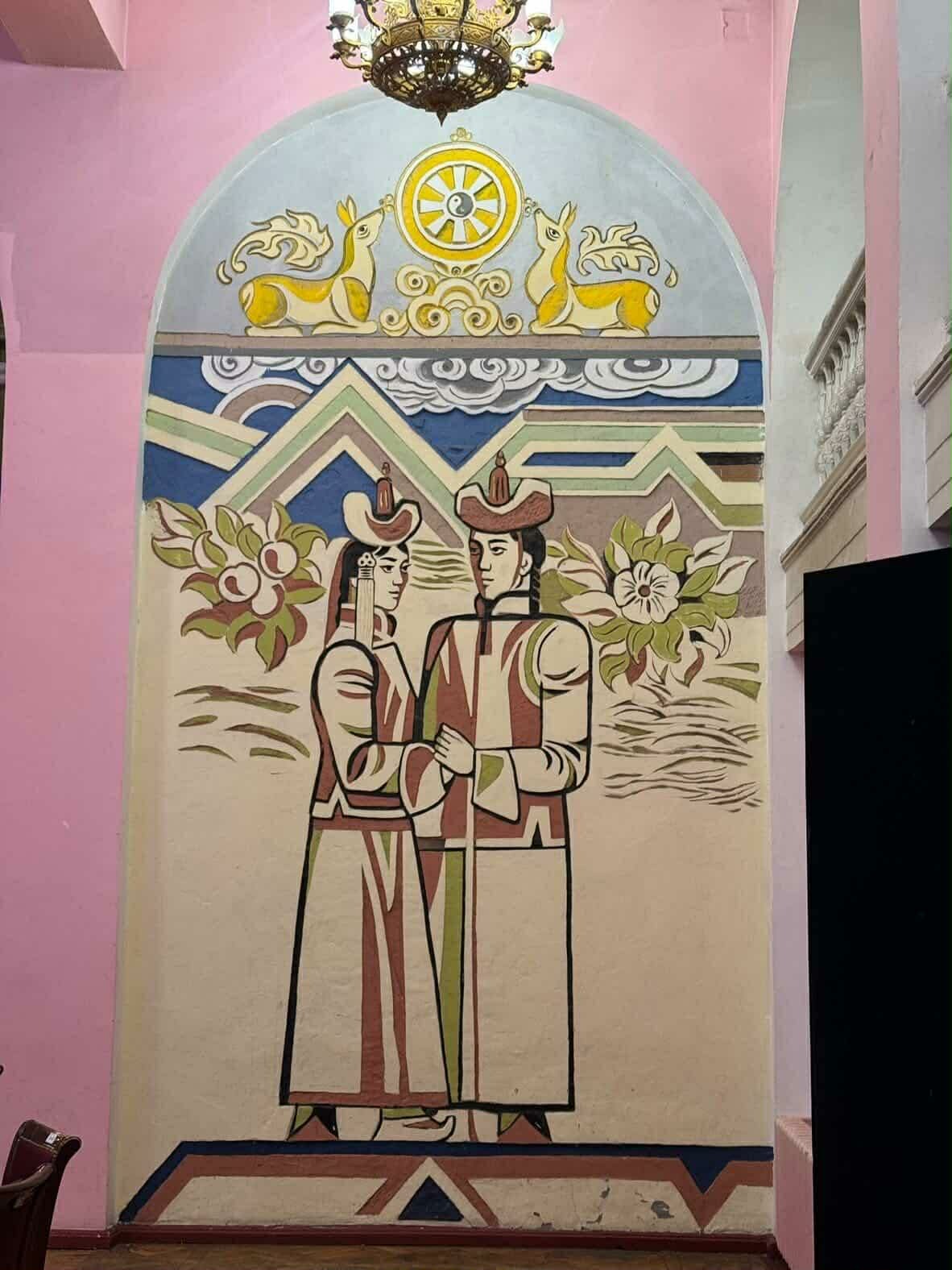 Мөн энэ хэсэгт “Юндэн, Нансалмаа” болон балетын хоёр жүжигчний дүр бүхий гоёмсог ханын зураг байлаа. Энэ зургуудыг 1990 онд Урлагийн Гавьяат зүтгэлтэн М.Бүтэмж гуай зурсан талаар ДБЭТ-аас эрхлэн гаргасан “Учиртай гурван толгой дуурийн түүхэн тэмдэглэл” номд дурджээ.